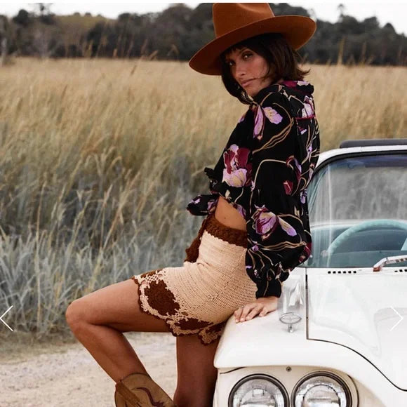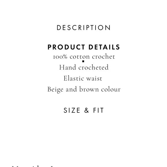 “ We are completely in love with hand crochet. The unique artisan beauty and fun, carefree vibes make these incredible, slowly made pieces forever favorites. We love the stunning, simple yet flattering shape and floral motif along the hem. This skirt can be dressed up or down for an effortless beach day style or a balmy night dinner party. You will feel like you're on a perpetual holiday in this stunner.”